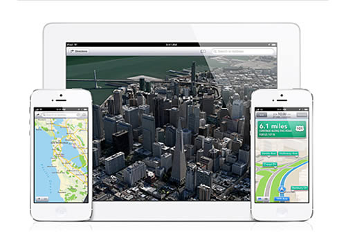 ใน iOS 6 แอปเปิ้ลเลิกใช้ระบบแผนที่ของ Google หันมาใช้ระบบของตัวเอง พร้อมเปิดตัวฟีเจอร์ใหม่ในแผนที่นั้นคือมุมมองแผนที่แบบ 3D และระบบนำทางแบบ Turn-by-turn โดยหน้าตาแผนที่ใน iOS 6 ได้เปลี่ยนไปพอควร สิ่งที่หายไปแน่ ๆ คือ Google Street View ที่ไม่มีในระบบแผนที่อันใหม่บน iOS 6